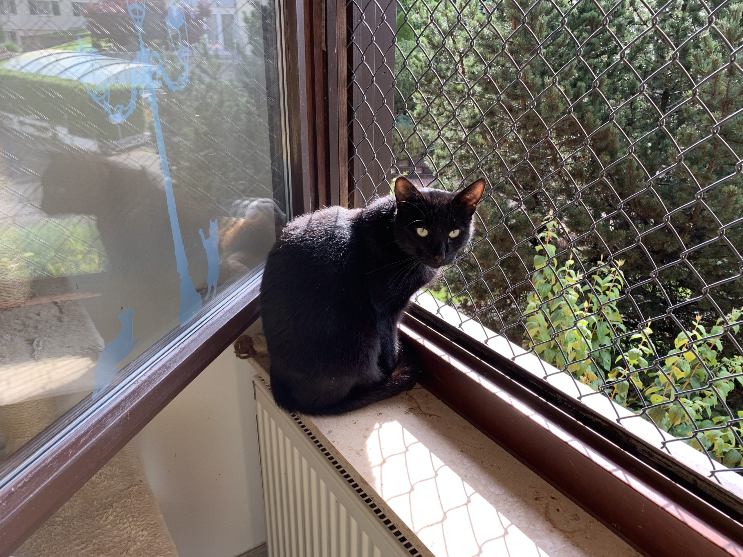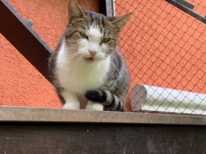 Kitkat (le gris-blanche) a été le premier à trouver son chemin à l’extérieur et après un certain moment d’adaptation, Flocon l’a également suivie.