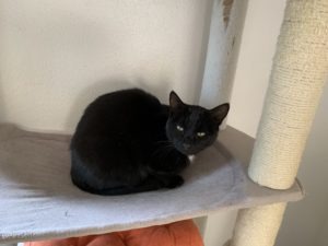Flocon est le contraire de ce qu’on aurait pu penser, au lieu d’un minet blanc il était noir avec une petite tache blanche sur le cou.