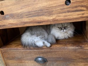 Quand j’ai parlé à ses humains quand il est rentré chez lui, ils m’ont dit qu’il était apparemment à la maison aussi comme ça.